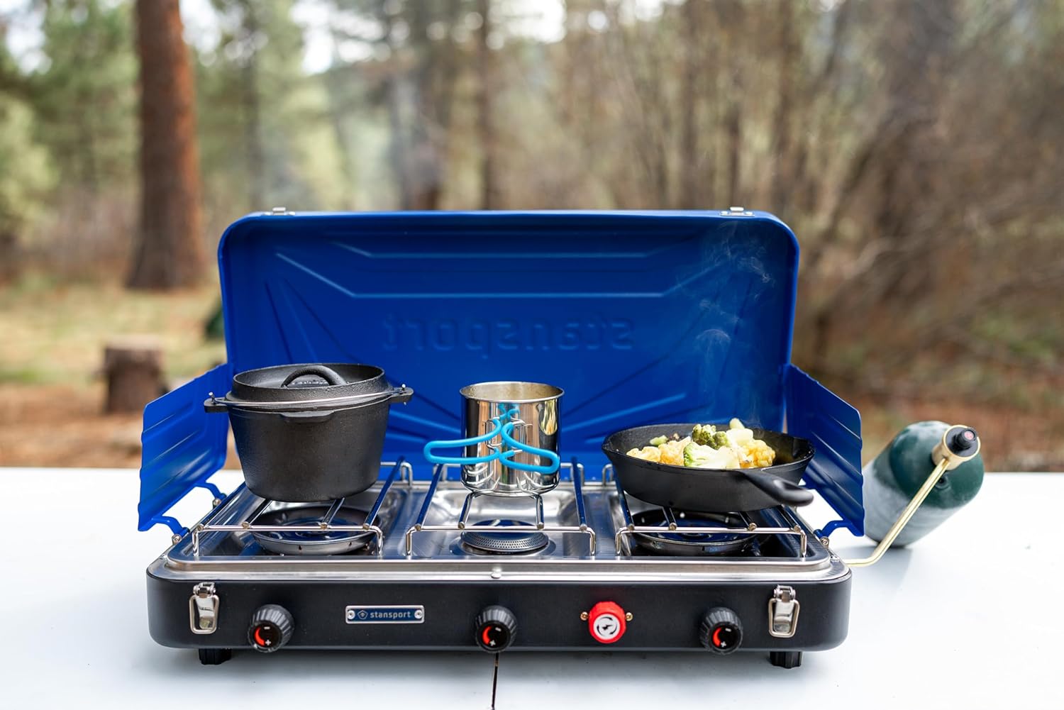 The Stansport Propane Stove emerges as a practical because it is the best tent stove for winter camping and an efficient choice for campers seeking a portable double gas stove camping cooker capable of handling diverse culinary needs. This robust stove offers a compelling blend of power, durability, and affordability, making it a strong contender for various outdoor adventures.